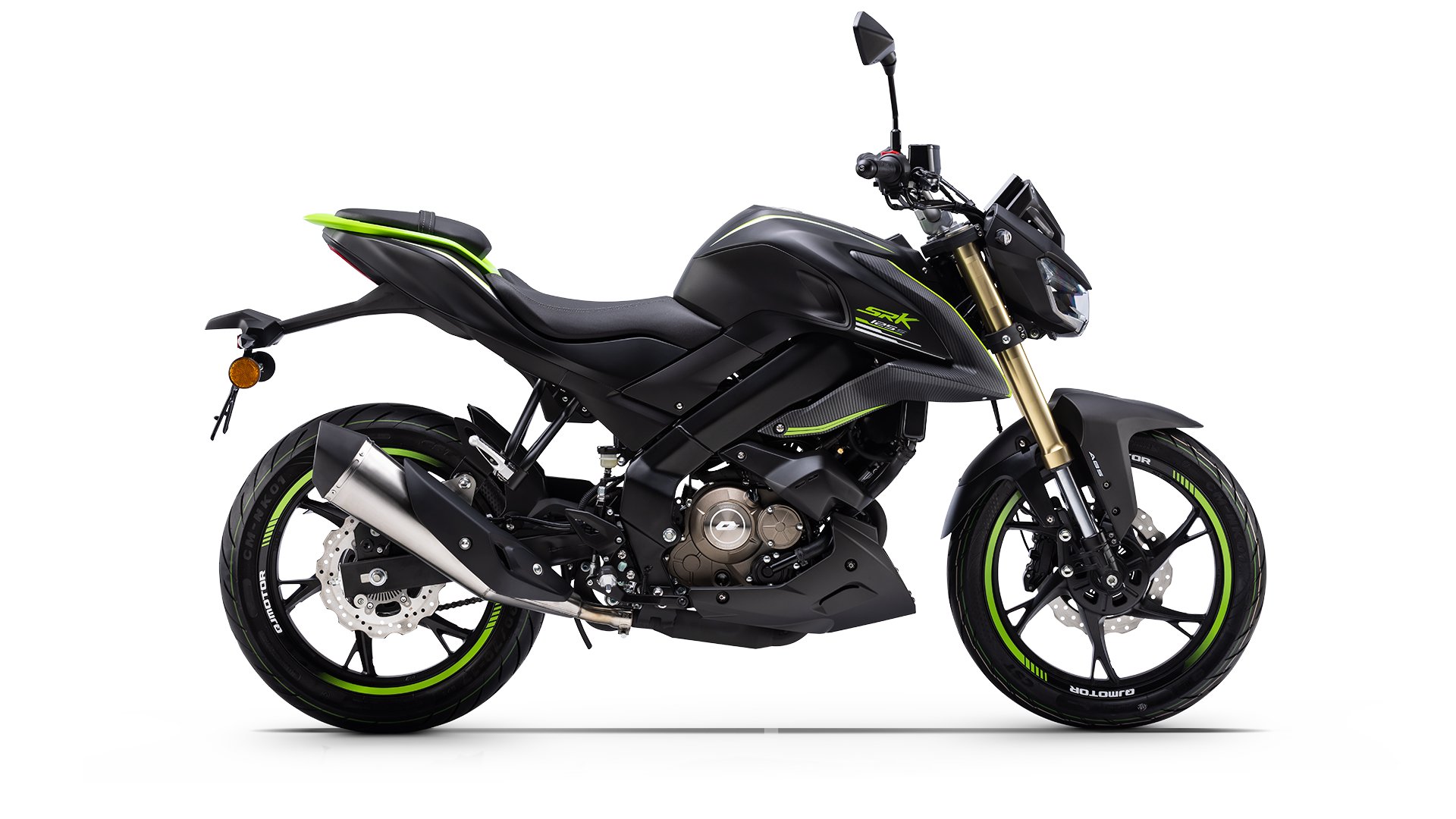 Motor monocilíndrico de 125 cc. Potência 15 cv. Iluminação totalmente LED. Freios a disco ABS “onda”. Painel de instrumentos com ecrã TFT multifunções de 5″. Cores: preto, branco e cinzento. Carta de condução A1.